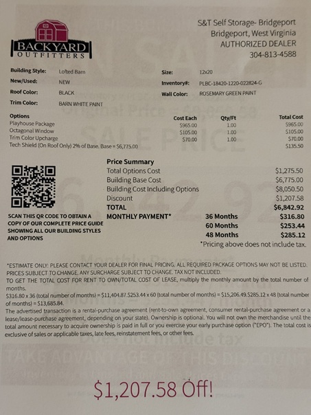 | Cash Price | $6,842.92 + tax after 15% OFF | |