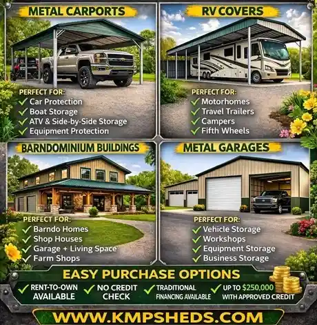 Quality Steel Structures, Residential and Commercial Metal Storage Buildings, Sheds, Barns, Metal Garages, Metal Carports, RV Covers & Tiny Homes at competitive affordable prices.