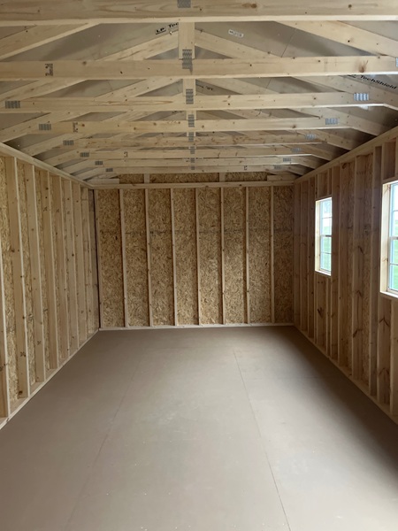 -9 Ft Garage PKG -1(2×3) Windows -Tall 9 Lite Door -Add Trim Color -6″ Overhang -2×6 Floor Joists -Tech Shield Roof -Standard Panel (uninsulated) | |