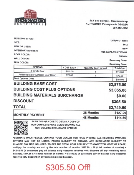 8x12 utility building on sale chambersburg