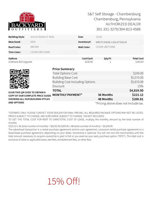 | Walls: | 8 Ft Walls Cedar Urethane | |