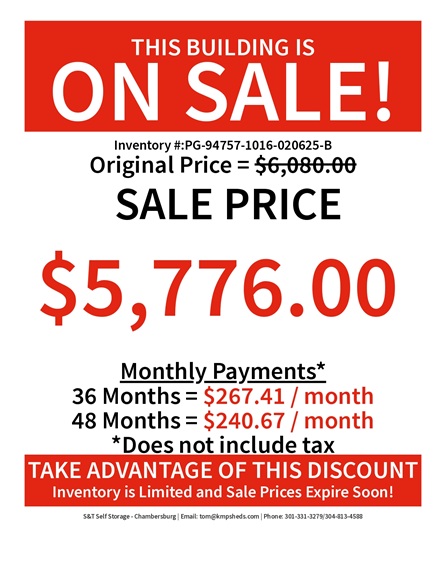 -8 Ft Walls -8 Ft Garage PKG -Standard Windows -Standard Panel -Painted Trim | |