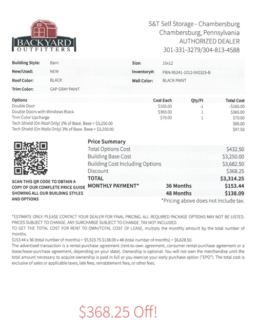 | Model: | 10×12 Barn | |
