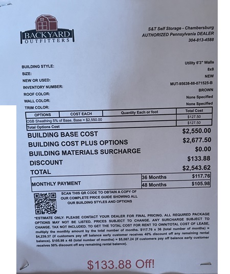 | Cash Price | $2,543.62 + tax after $133.88 OFF (5%) | |