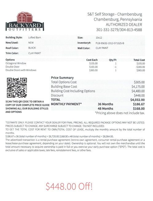 | Cash Price | $4,032.00 + tax after $448.00 OFF (10%) | |