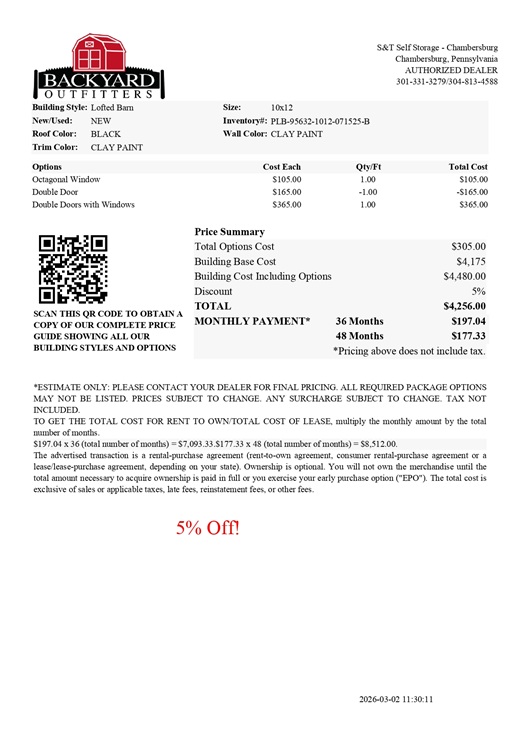 | Model: | 10×12 Lofted Barn | |