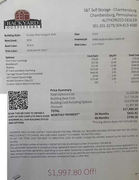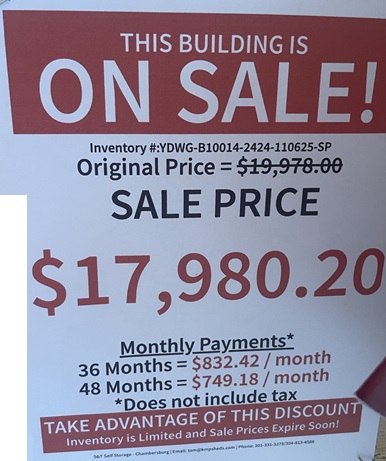 | Cash Price | $17,980.20 + tax after $1,997.80 OFF (10%) | |