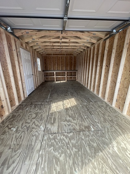 -9 Ft Garage PKG -1(2×3) Window Metal -Tall 9 Lite Door -Workbench -6″ Overhang -Standard Panel -5/8 Treated Sq Edge -3/4 Flooring -2×6 Floor Joists -Tech Shield Roof -OSB Sheathing | |