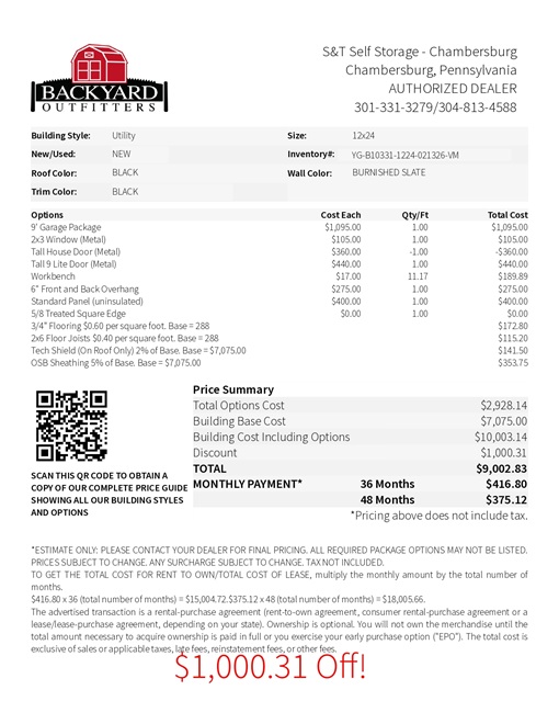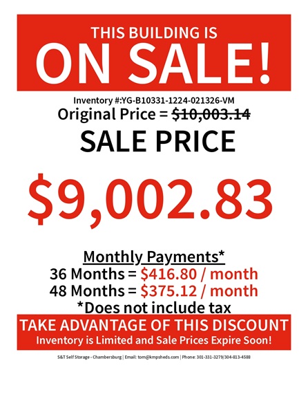 | Model: | 12×24 Utility 9 Ft Garage PKG Metal Siding | |