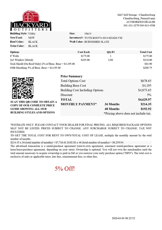 10×14 Utility with Metal Siding for sale in Chambersburg PA