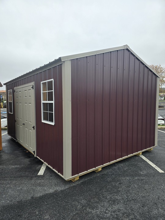12×16 Vertical Metal Utility $5,813.77 plus tax after $305.98(5%) Or Monthly payments as low as $215.32 plus tax. #sheds #shedsforsale #shedsnearme #frontroyalva #rivertoncommons #checkers #kmpsheds #backyardoutfitters