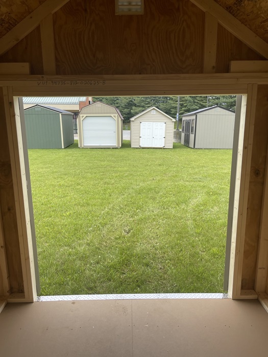 -Double Doors Vinyl -6″ Overhang -7/12 Roof Pitch -House Wrap Walls -Tar Paper Roof -Vinyl 20% Base | |