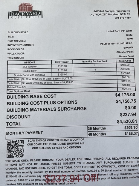 -1(2×3) Window -Tech Shield Roof -Tech Shield Walls -Painted Trim -Double Doors with Windows | |