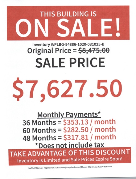 | Cash Price | $7,627.50 + tax after $847.50 OFF (10%) | |