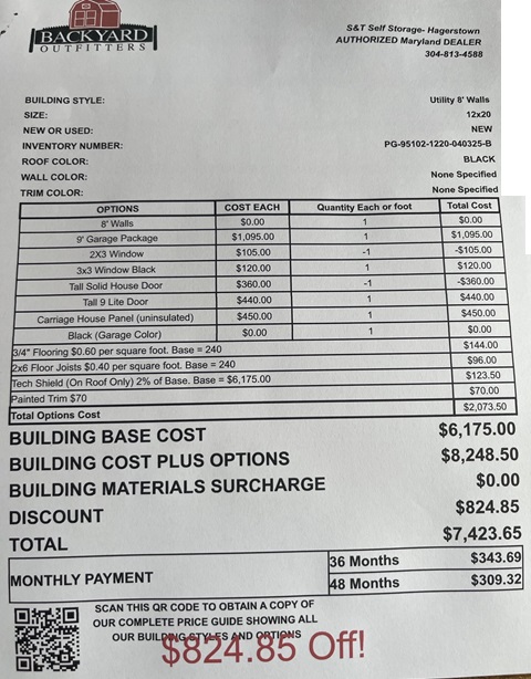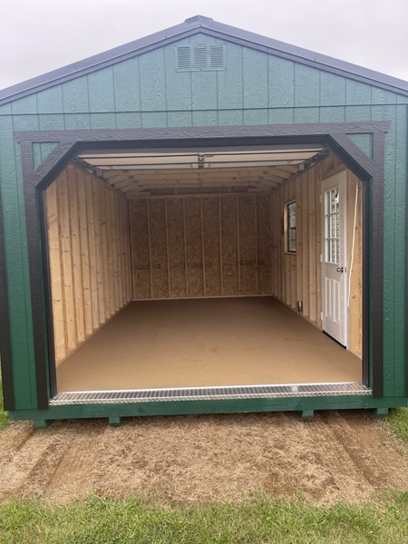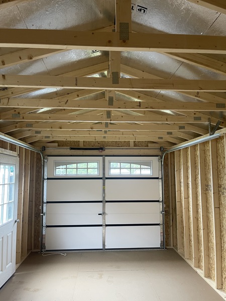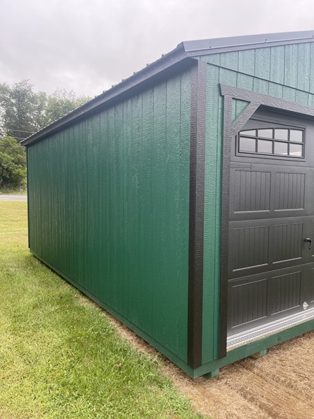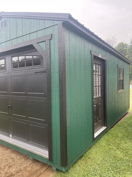 -8 Ft Walls -9 Ft Garage PKG -1(3×3) Window -Tall 9 Lite Door -Black Garage Door -3/4 Flooring -2×6 Floor Joists -Tech Shield Roof -Painted Trim -Carriage House Panel | |