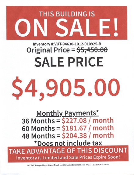 10×12 Vinyl Utility for sale Hagerstown MD