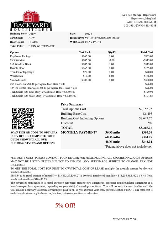| Model: | 10×24 Utility with Playhouse PKG and Vaulted Gable | |