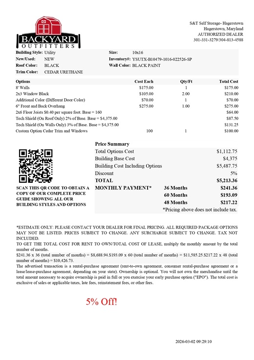 | Model: | 10×16 Utility | |