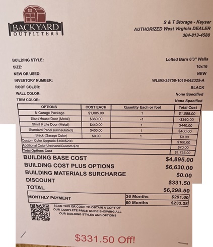 Cash Price | $6,298.50 + tax after $331.50 (5%)OFF | |