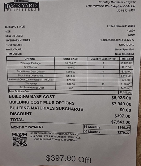 | Cash Price | $7,543.00 + tax after $397.00 (5%)OFF | |