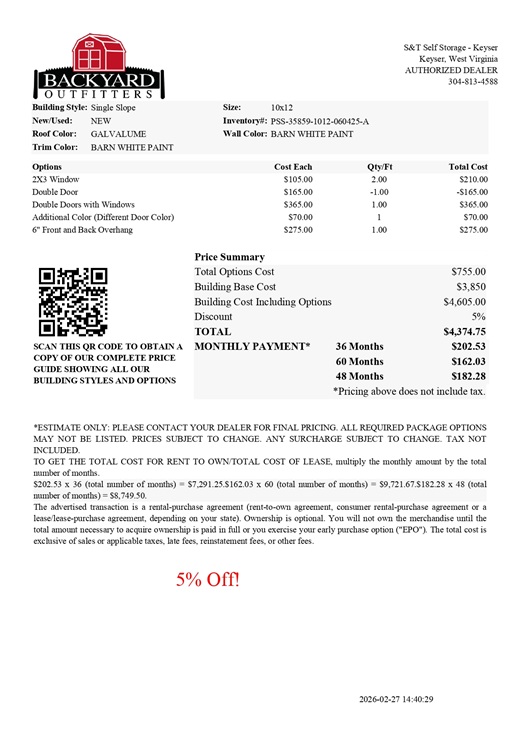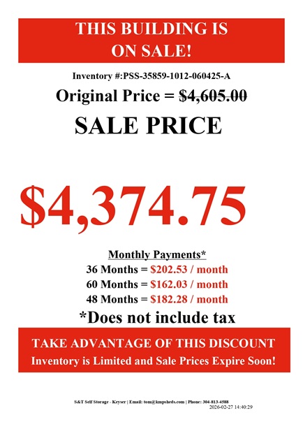 Sale Prices on Wood Sheds West Virginia