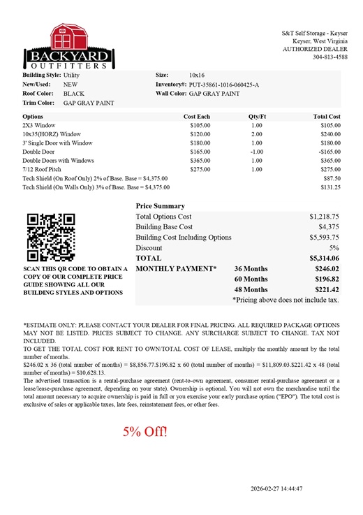 | Cash Price | $5,314.06 + tax after 5% OFF | |