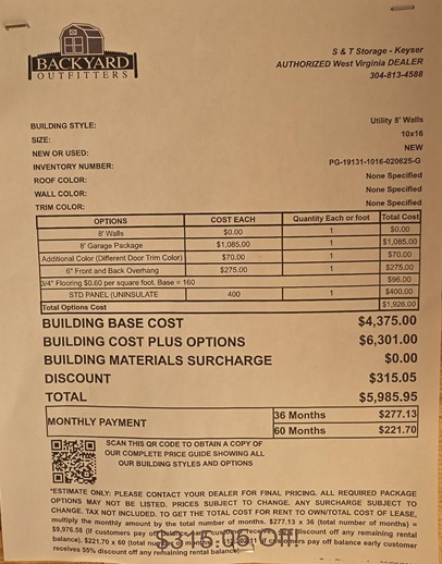 10×16 Garage Utility shed on sale in Keyser WV