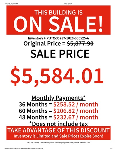 ![]() OR email: Tom@kmpsheds.com | ||
