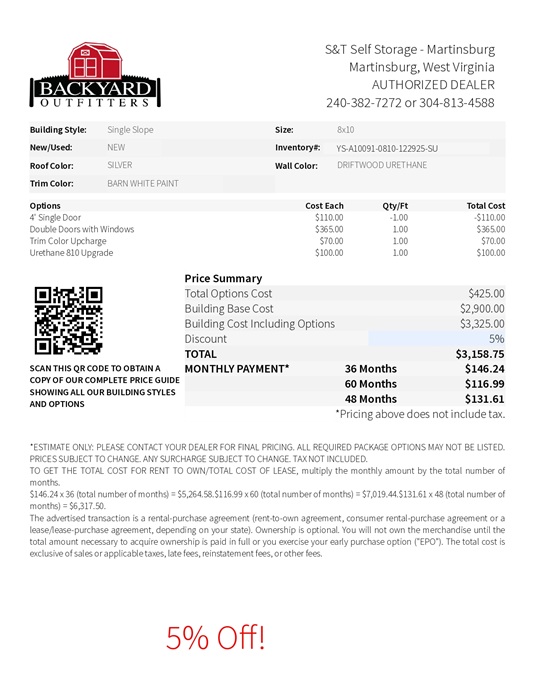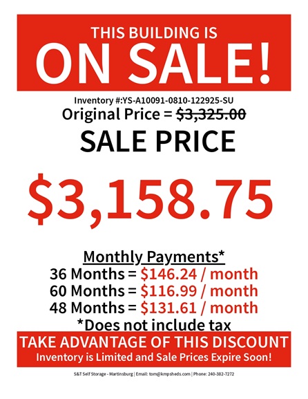 8×10 Single Slope building on sale in Martinsburg WV