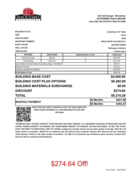 10×16 Side Lofted Barn for sale Winchester VA 22601