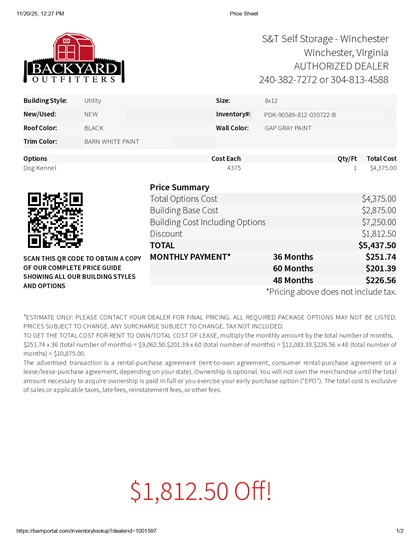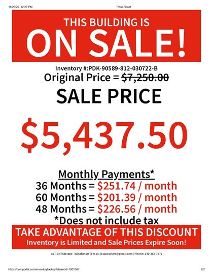 | Cash Price | $5,437.50 + tax after $1,812.50 OFF (25%) | |