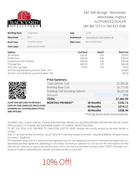 We are and authorized dealer of Backyard Outfitters USA portable buildings.