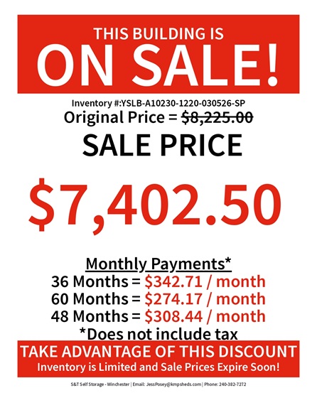 | Model: | 12×20 Lofted Barn with 9 Ft Garage Door | |