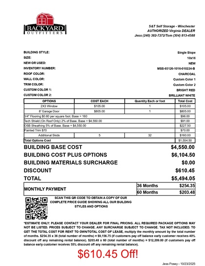 | Model: | 10×16 Single Slope with Roll-up Door | |